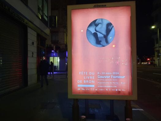 買完這本書第二天,我去小酒館採訪老闆本傑明,去往小酒館那條街街口,拯救愛的廣告牌赫然立在路中間沒有撤去,好像一個指示,讓我不禁懷疑這麽多年的圖書節,彷彿就為了給我傳遞這條消息。