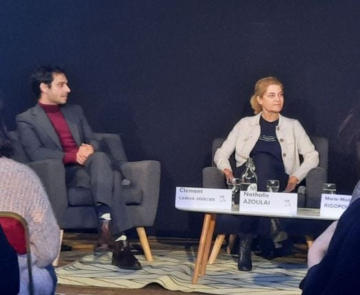 圖書節上我第一次見到Nathalie Azoulai,聽了她的講座,買了唯一一本書,當時翻書翻了幾頁,猛然發現和我有些巧合,就和她聊了聊,她聽了後睜大眼睛說好奇怪啊,然後大筆一揮,給我簽名:
