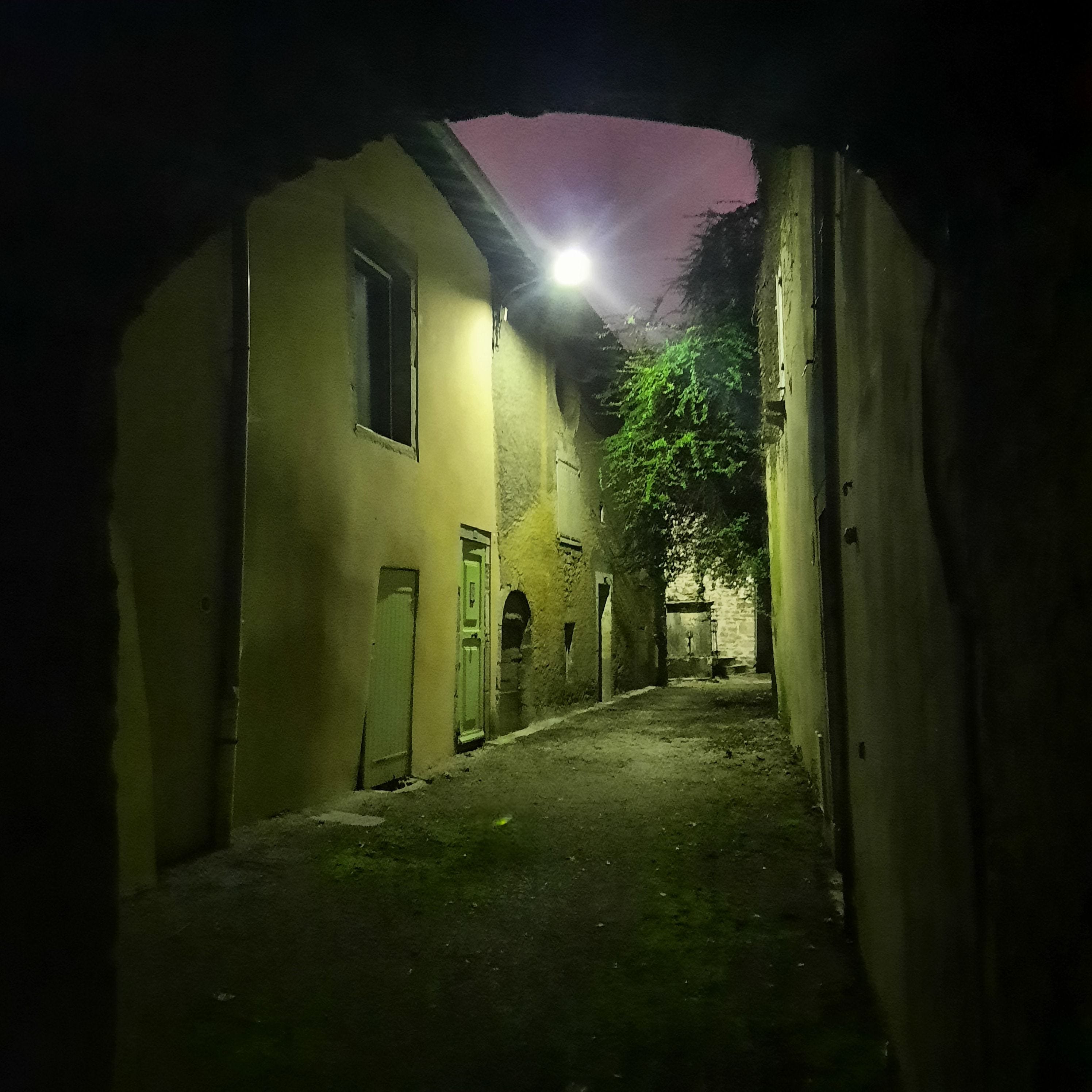 聖愛讓我想起法國另一座離此不遠的小鎮——Ambérieu(昂貝略昂比熱),它也像被丟進時空荒原裡,那裡的老城簡直就是二戰中的樣子原封不動陳列出來:門窗封鎖,好像要躲避戰亂,牆體黝黑,像剛被飛機炸過,上面覆蓋著一層黑色的死去的苔蘚,還有殘垣斷壁,似乎已經碎裂許久。路口房子還殘留著二十世紀初的廣告,顏色發白的花體字像個褪色的慶典,昭示著那些已經找不到的商店,麵包店和餐館曾經生機勃勃的存在。